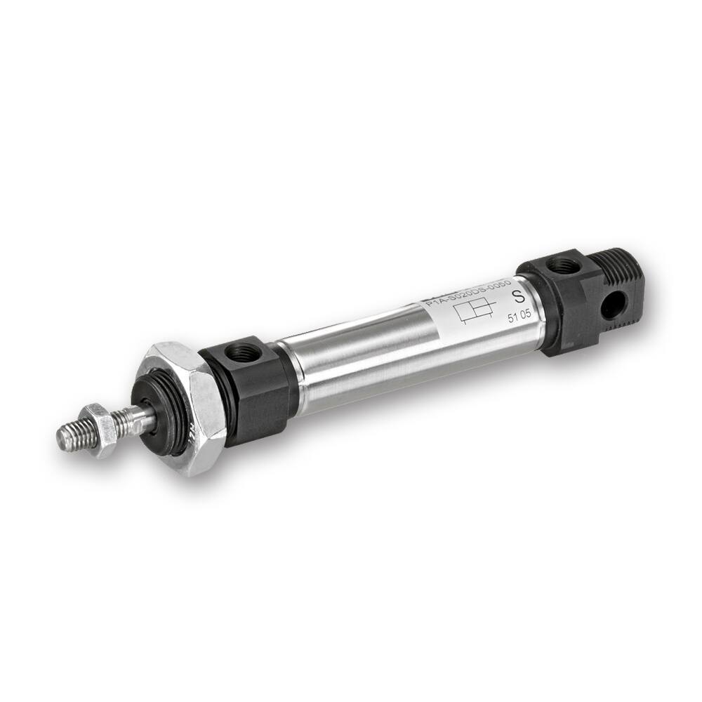 Siłownik pneumatyczny okrągły Parker P1A o średnicach od Ø10 do Ø25 mm jest siłownikiem mini ISO 6432 przeznaczonym do pracy w standardowych temperaturach od -20°C do +80°C i wysokich temperaturach od -10°C do +150°C, przeznaczonym do lżejszych zastosowań w przemyśle opakowań, spożywczym i tekstylnym. Dostępne siłowniki pojedynczego i podwójnego działania.