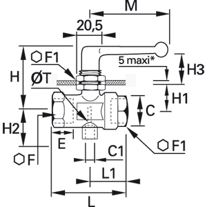 Warianty zawór kulowy 3-drogowy panelowy montaż G3/8 M5x0,8 0449 10 17